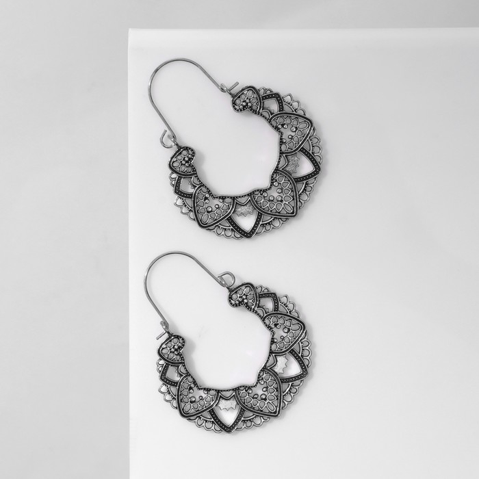 Серьги металл «Восток» круг цветов, цвет чернёное серебро