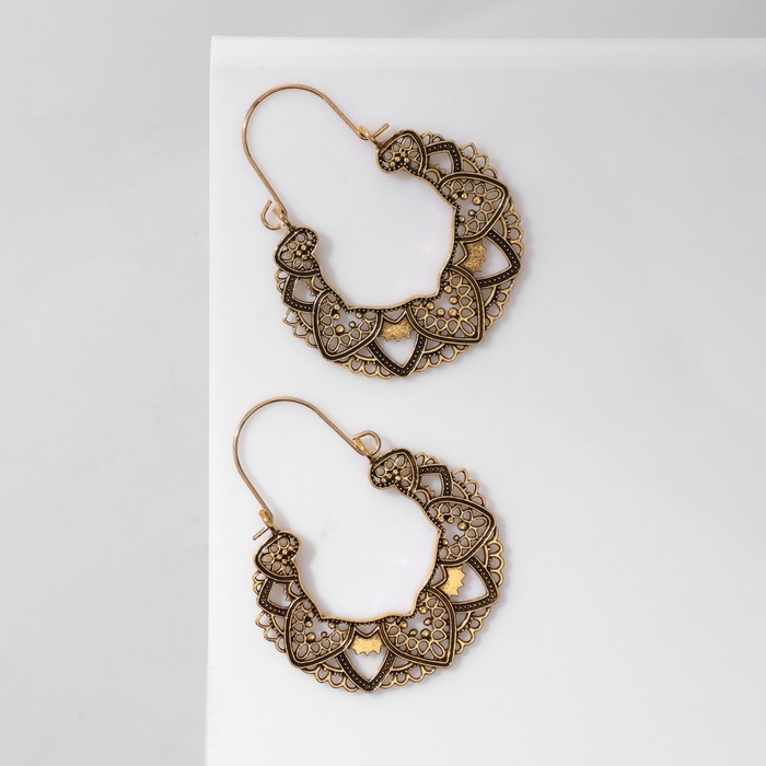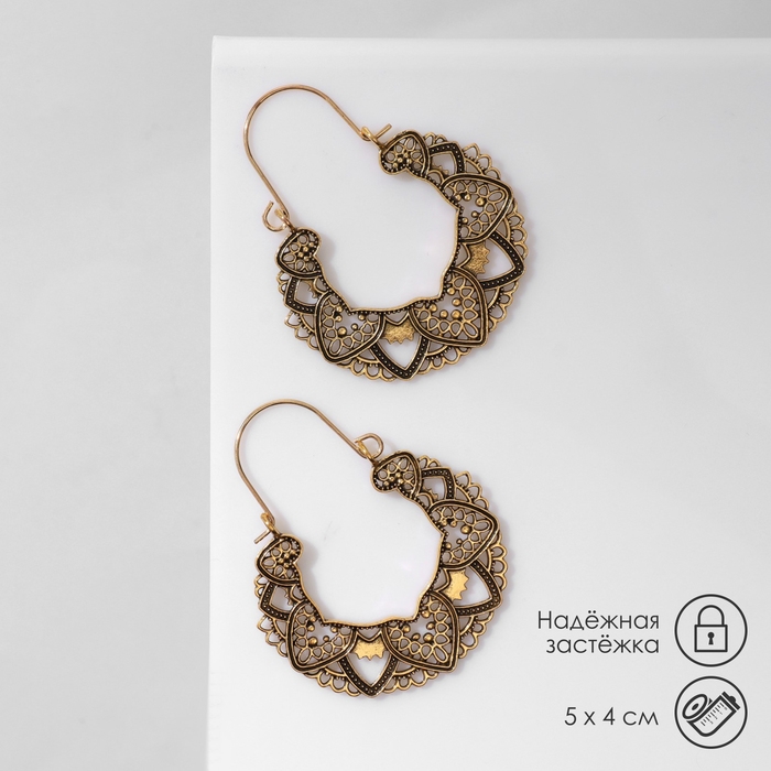Серьги металл «Восток» круг цветов, цвет чернёное золото