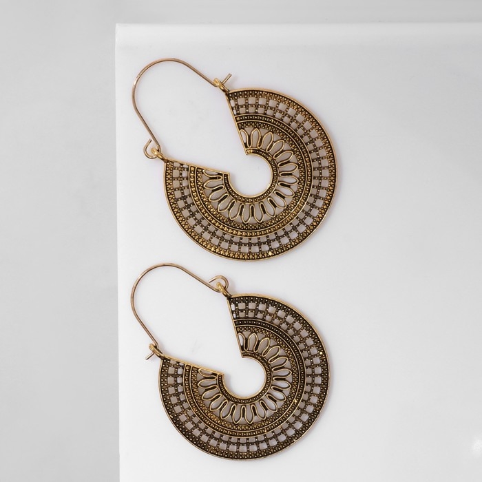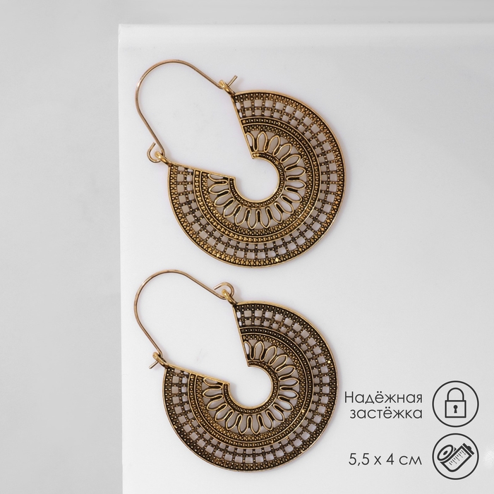 Серьги металл «Восток» диск цветочный, цвет чернёное золото