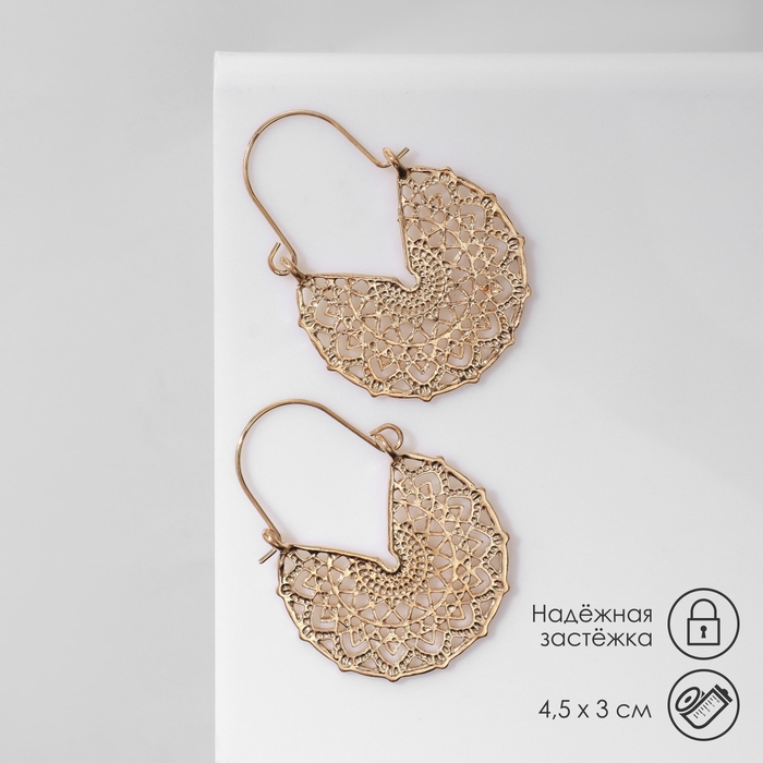 Серьги металл «Восток» ажурный цветок, цвет золото