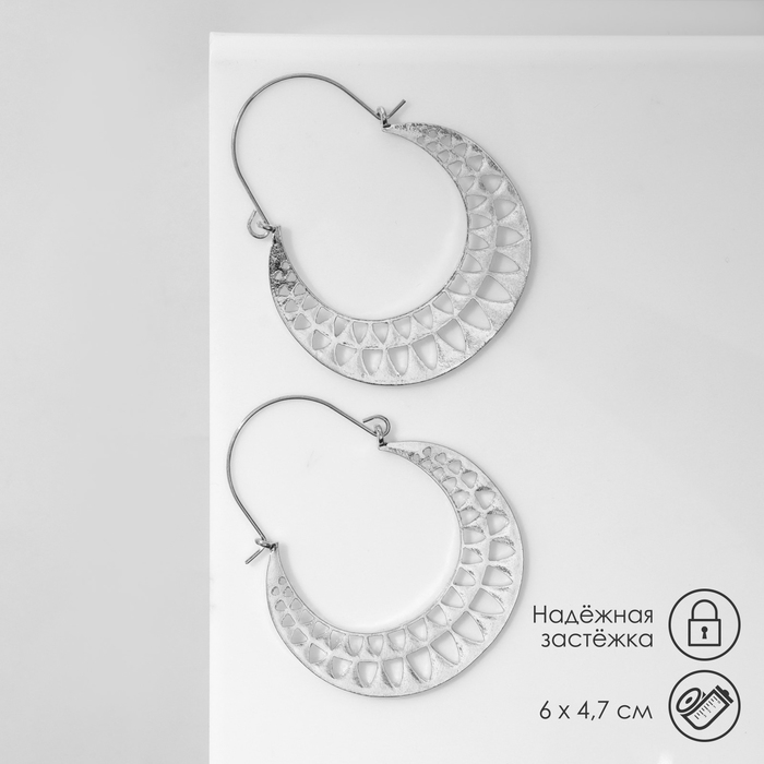 Серьги металл «Восток» диск солнца, цвет серебро