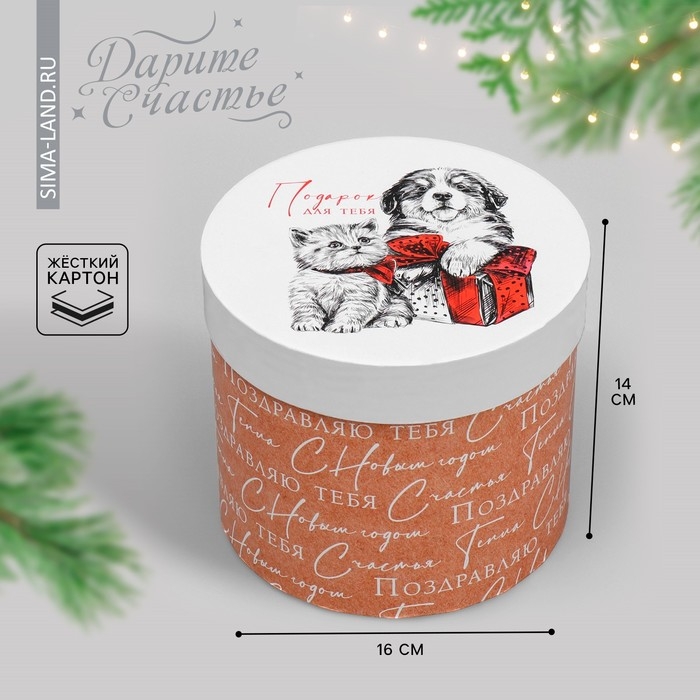 Коробка подарочная круглая «Подарок для тебя», 14 х 16 см, Новый год
