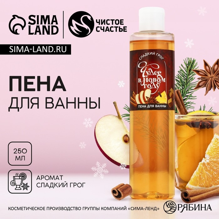 Пена для ванны «Чудес в Новом Году!», 250 мл, аромат сладкого грога, ЧИСТОЕ СЧАСТЬЕ