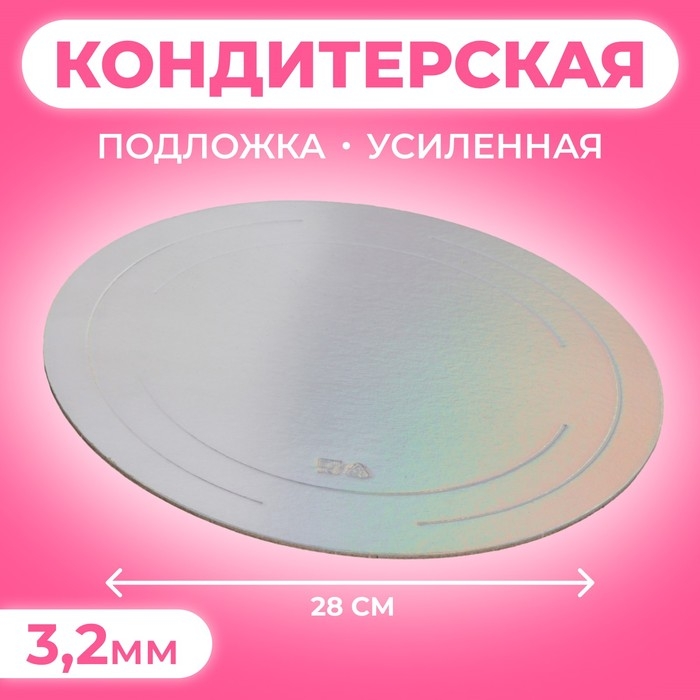 Подложка усиленная, 28 см, серебро-перламутр, 3,2 мм