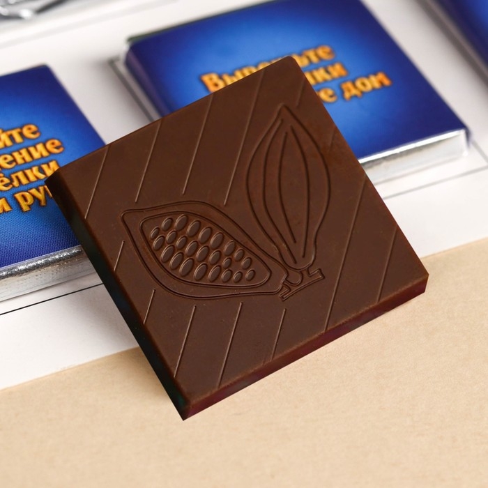 Состав: сахар, какао-масло, сухие молочные продукты, какао-тёртое, какао- порошок, эмульгаторы (лецитин соевый - Е322, PGPR - Е476), ароматизатор пищевой "Ванилин".