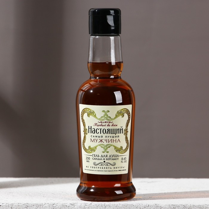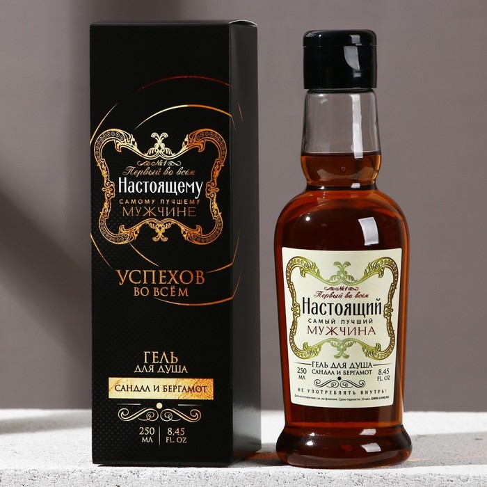 Гель для душа во флаконе коньяка «Настоящему мужчине», 250 мл, аромат сандала и бергамота, Новый Год