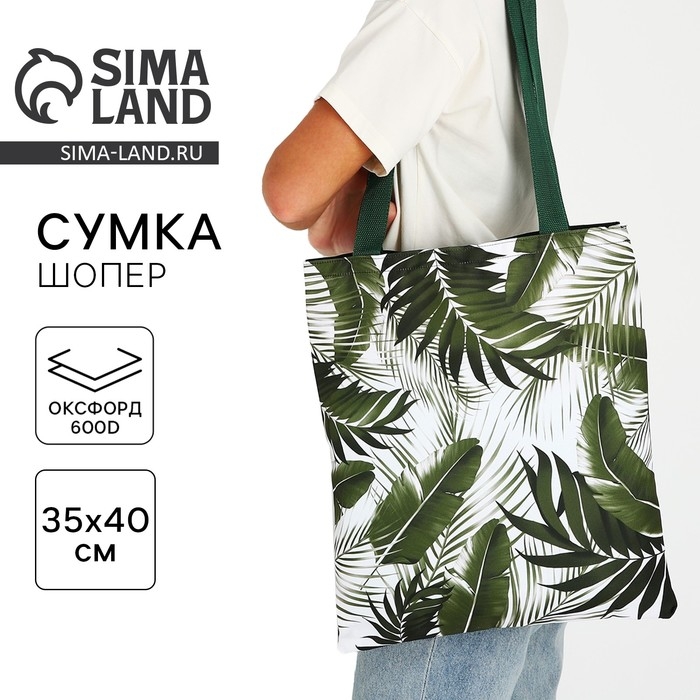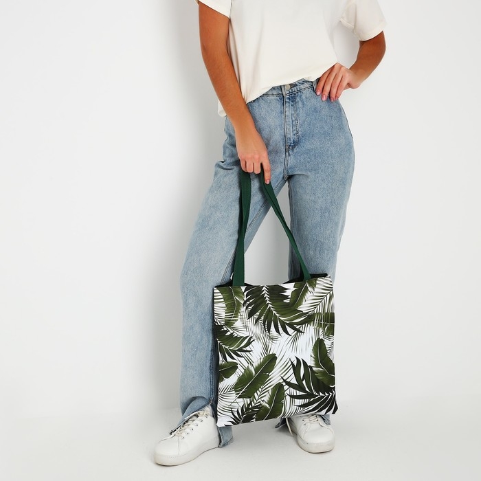 Шопер «Тропики» 35х0.5х40 см, отдел без молнии, без подклада, зеленый