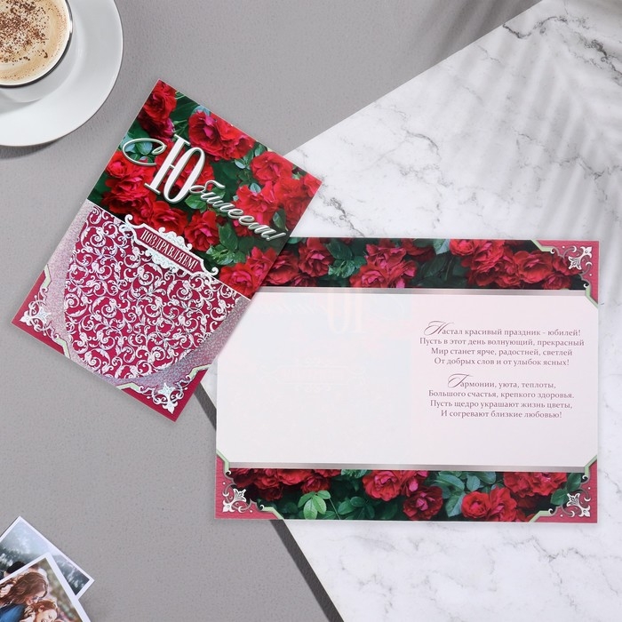 Открытка "С Юбилеем!" тиснение, цветы, А4