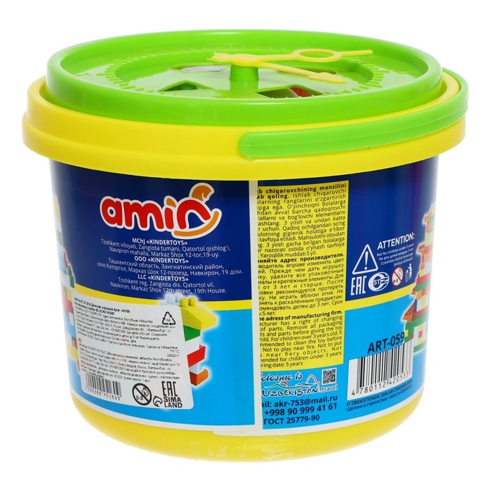 Конструктор BLOCKS, 34 детали, циферблат, сортер, в ведре