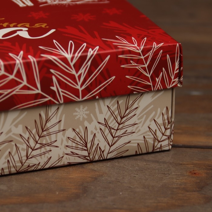 Новый год. Коробка складная, подарочная новогодняя "Еловая веточка" 14 х 14 х 14 см.
