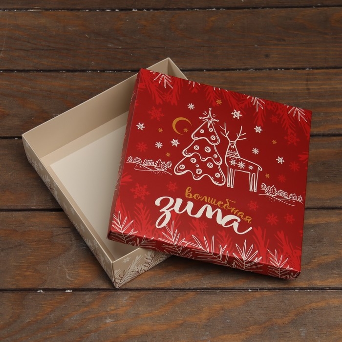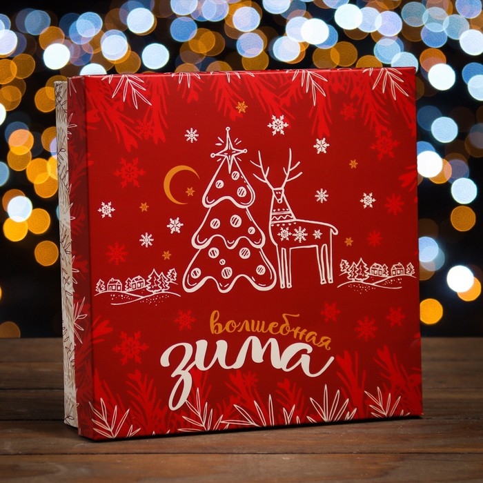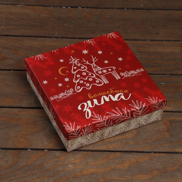 Новый год. Коробка подарочная новогодняя складная, крышка-дно "Волшебная зима" 20 х 20 х 6 см