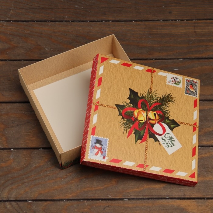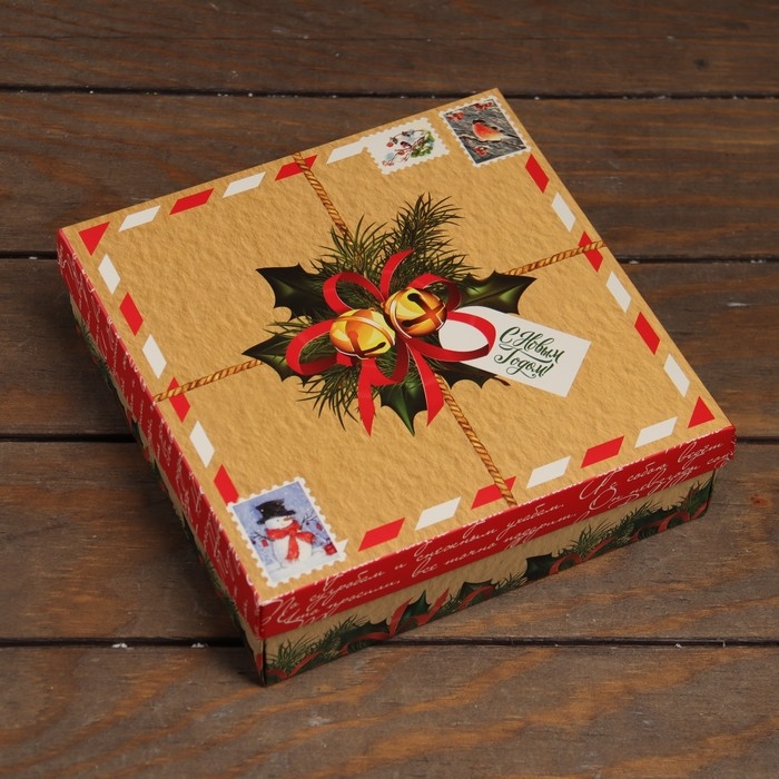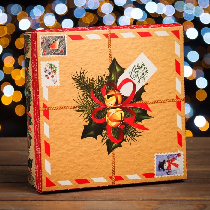 Новый год. Коробка подарочная новогодняя складная, крышка-дно "Новогодний подарок" 20 х 20 х 6 см