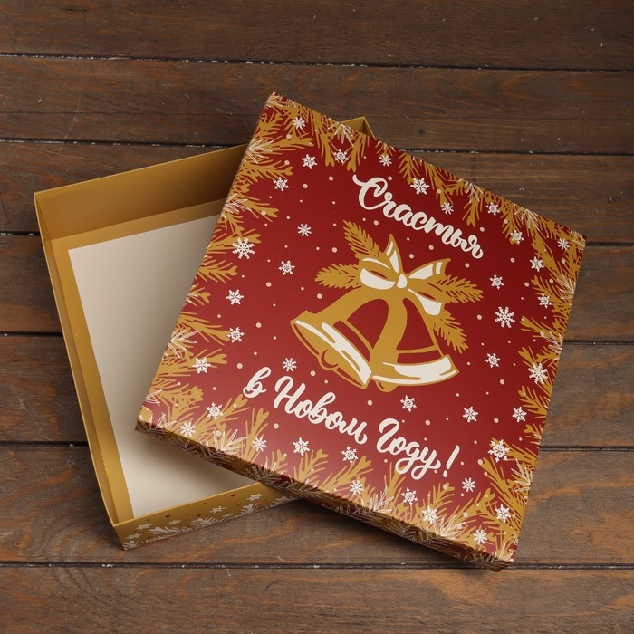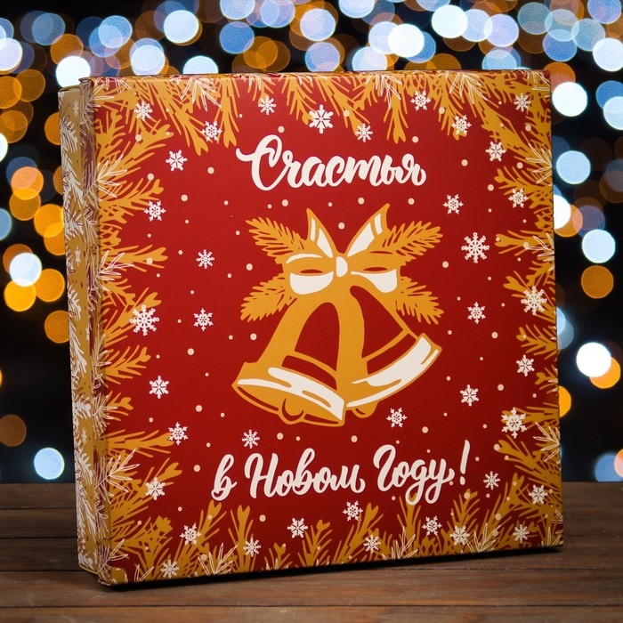 Новый год. Коробка подарочная новогодняя складная, крышка-дно "Счастья В Новом Году" 30 х 30 х 8 см