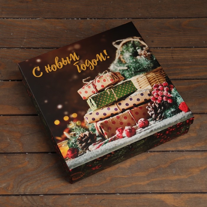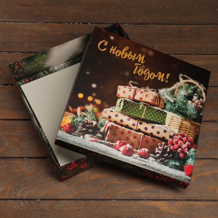 Новый год. Коробка подарочная новогодняя складная, крышка-дно "Новогоднее волшебство" 30 х 30 х 8 см