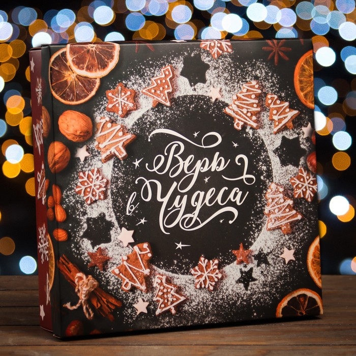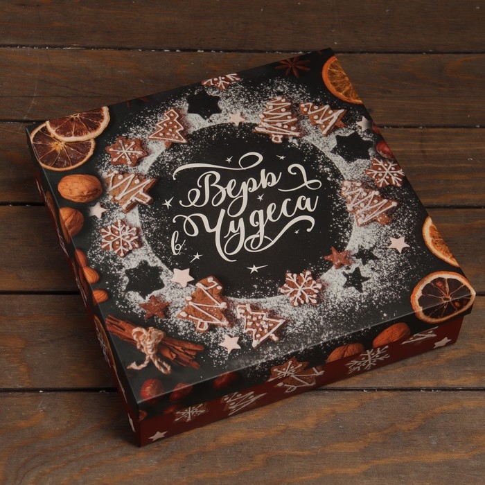 Новый год. Коробка подарочная новогодняя складная, крышка-дно "Верю в чудеса" 30 х 30 х 8 см