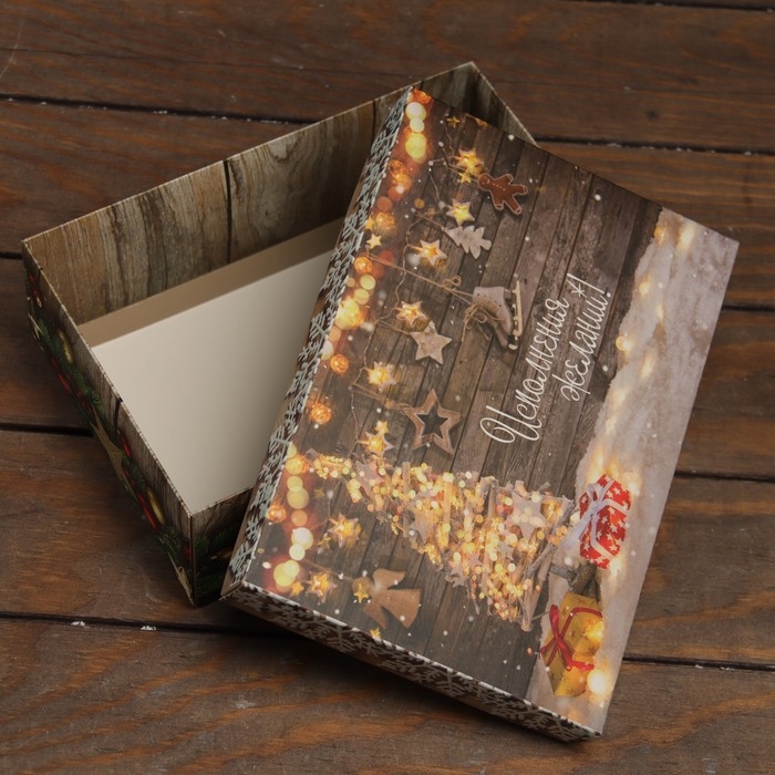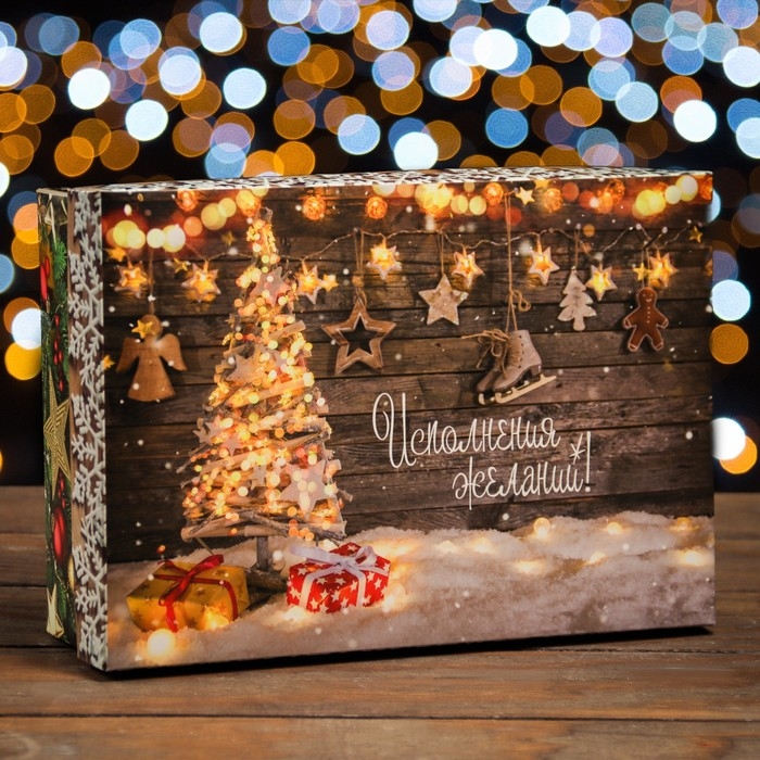 Новый год. Коробка подарочная новогодняя складная, крышка-дно "Исполнение желаний" 24 х 17 х 8 см