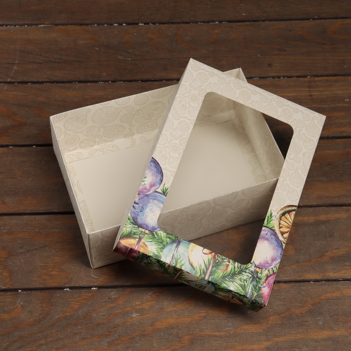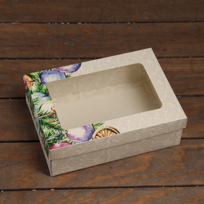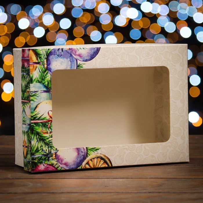 Новый год. Коробка подарочная новогодняя складная, крышка-дно, с окном "Новогоднее украшение" 24 х 17 х 8 см