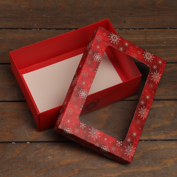 Новый год. Коробка складная, крышка-дно, с окном "С Новым Годом" 24 х 17 х 8 см