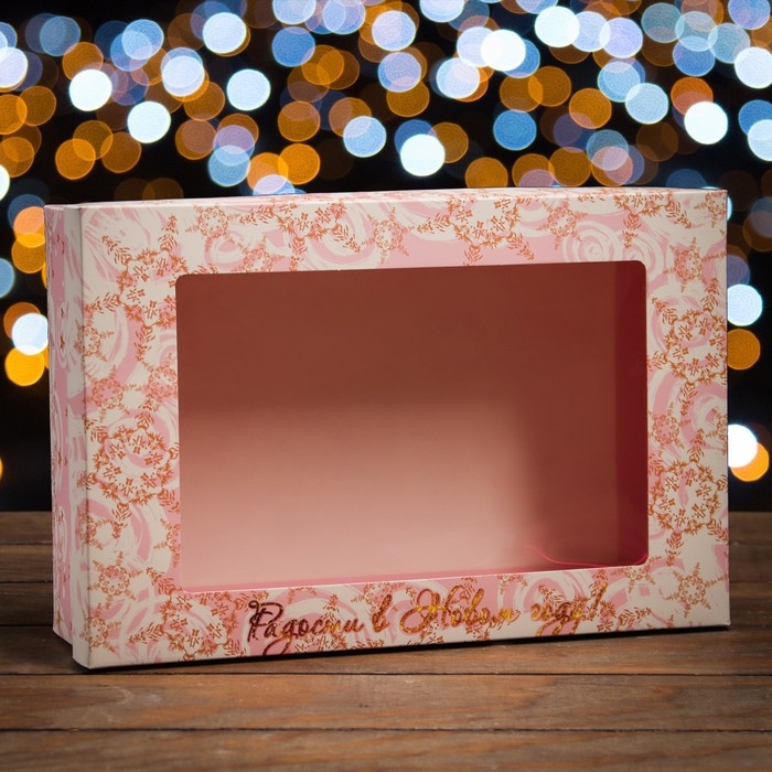 Новый год. Коробка подарочная новогодняя складная, крышка-дно , с окном "С Новым Годом" 30 х 20 х 9 см