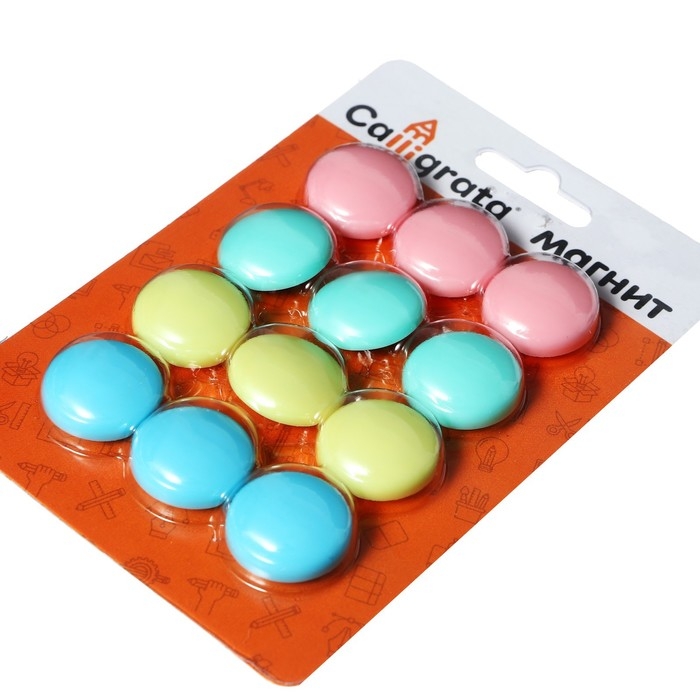 Набор магниты для доски d-2см, 12 штук, на блистере, пастель
