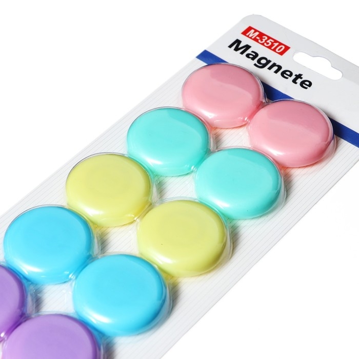 Набор магниты для доски d-3,5см, 10 штук, на блистере, пастель