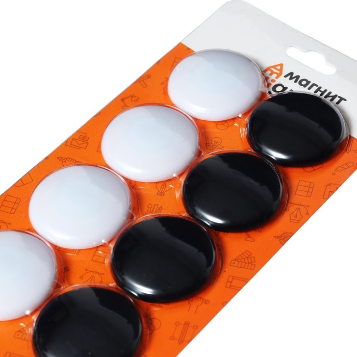 Набор магниты для доски d-4см, 8 штук, на блистере, 4 штуки-белые, 4 штуки-черные