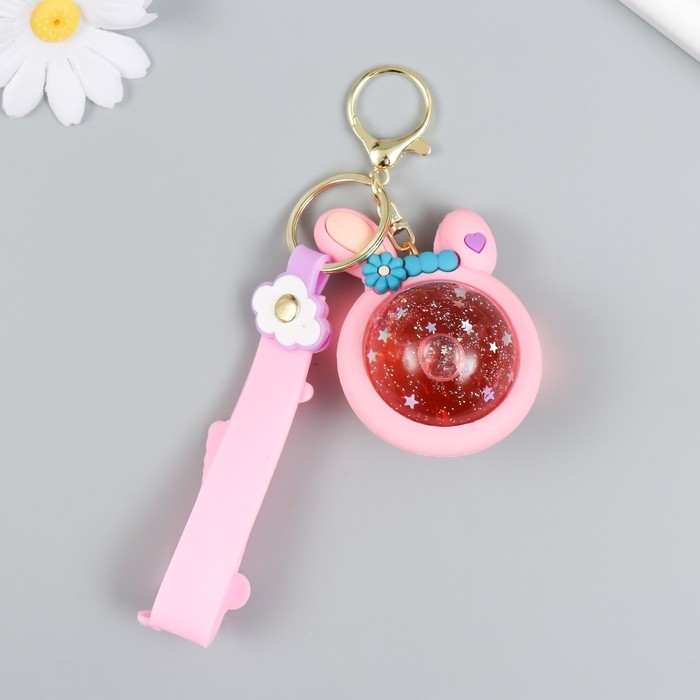 Брелок резина "Шарик-зайка" с браслетом и карабином, розовый 4х5,5х7,4 см
