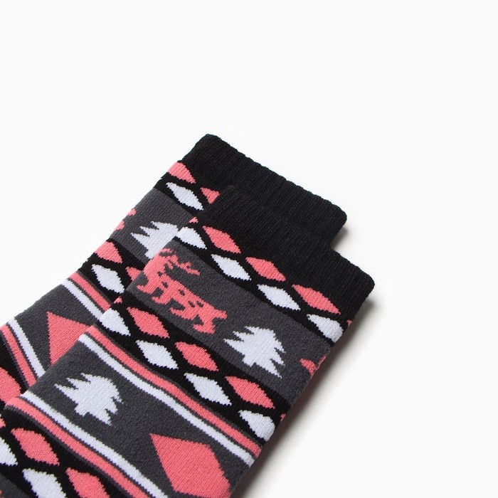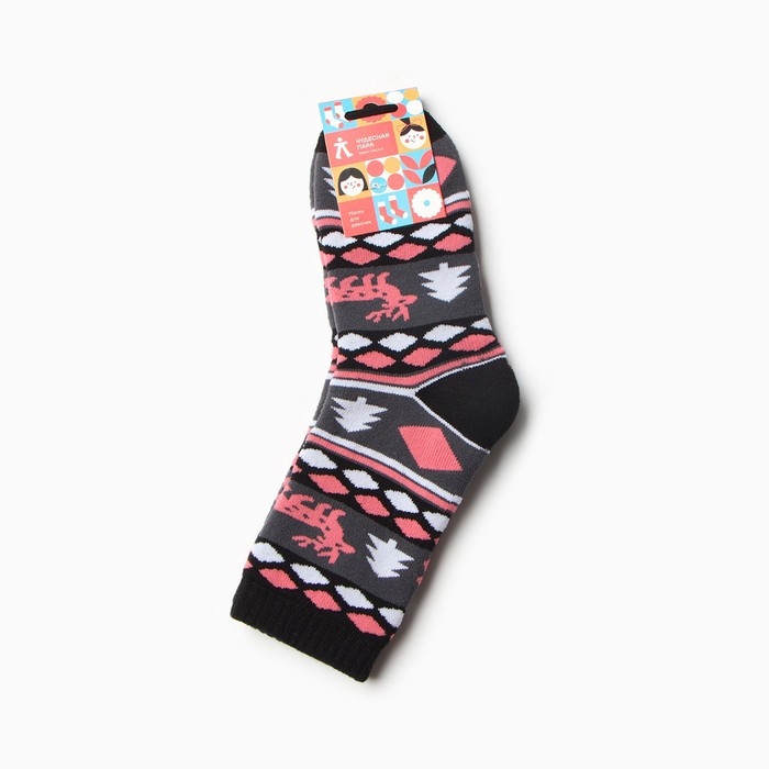 Новый год. Носки детские махровые "Скандинавские узоры" цвет чёрный, размер 22-24