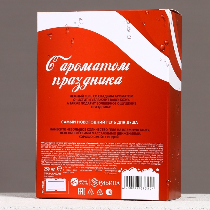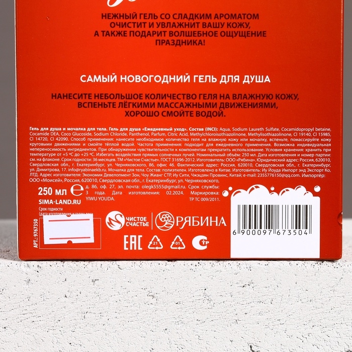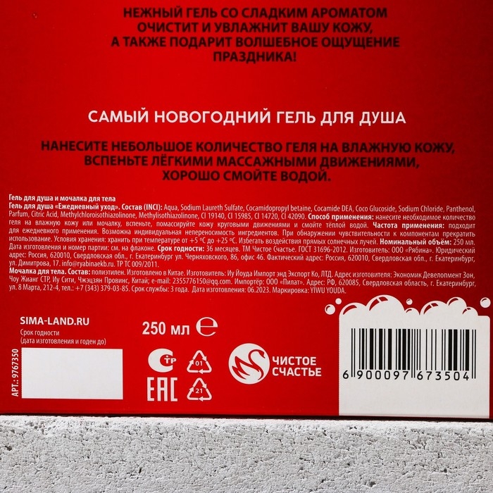 Подарочный набор косметики «С Новым Годом!», гель для душа 250 мл и мочалка для тела, ЧИСТОЕ СЧАСТЬЕ