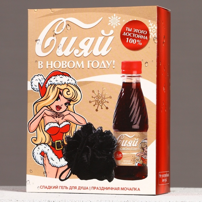 Новогодний подарочный набор косметики «Сияй в Новом Году!», гель для душа 250 мл и мочалка для тела, ЧИСТОЕ СЧАСТЬЕ