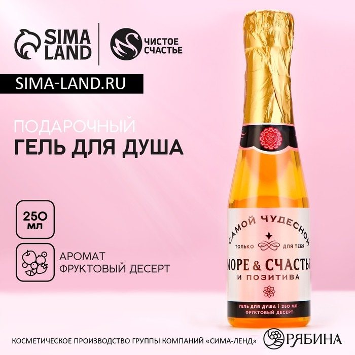 Гель для душа во флаконе шампанское «Море счастья», 250 мл, аромат фруктового десерта, Новый Год