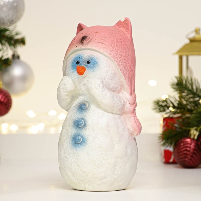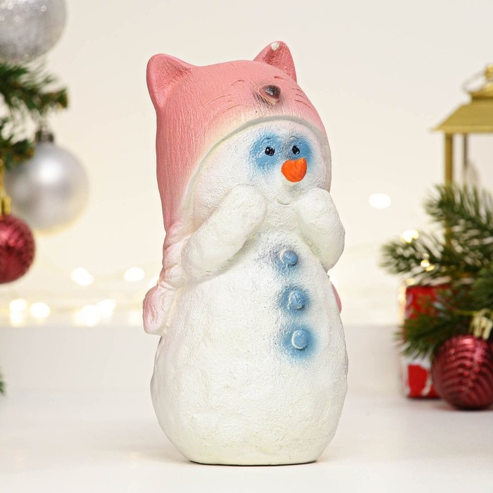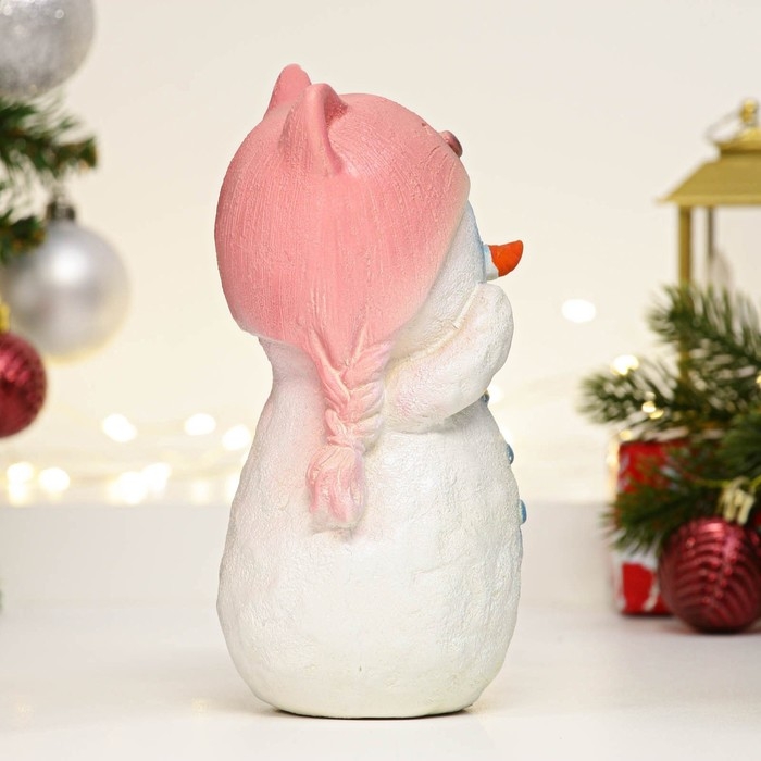 Фигура "Снеговик в розовой шапке" 18см