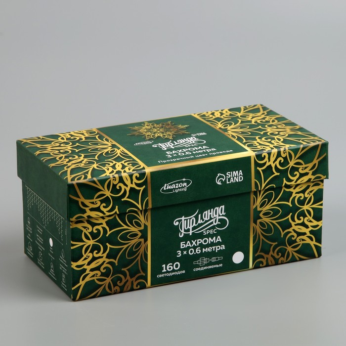 Гирлянда «Бахрома» 3 × 0.6 м, IP44, УМС, прозрачная нить, 160 LED, свечение белое, 220 В