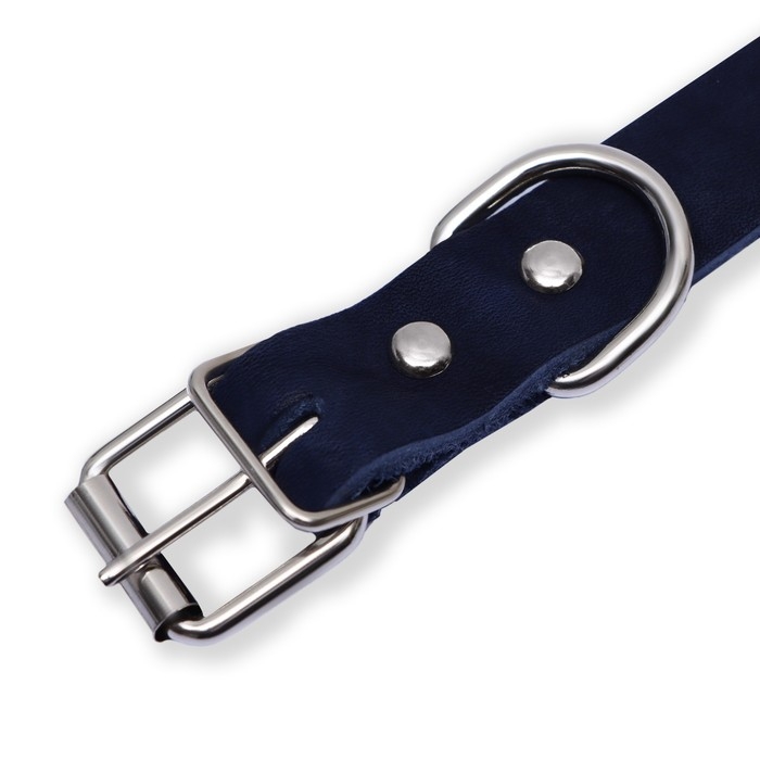 Ошейник кожаный однослойный, 45 х 2 см, ОШ 25-35 см, синий