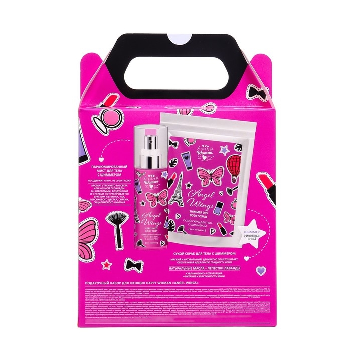 Подарочный набор косметики для женщин Happy Woman Angel Wings: скраб для тела, 150 г + мист, 150 мл
