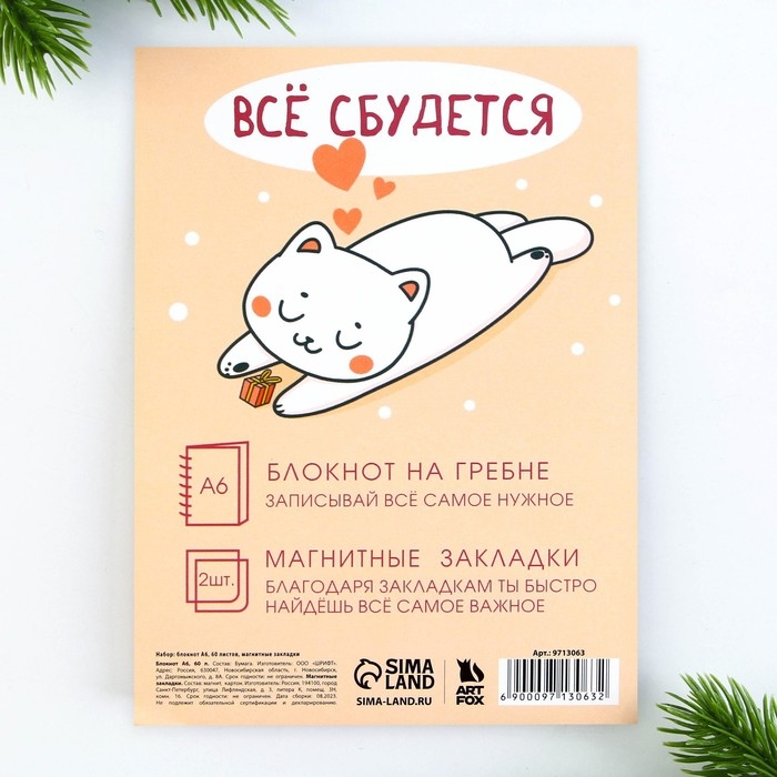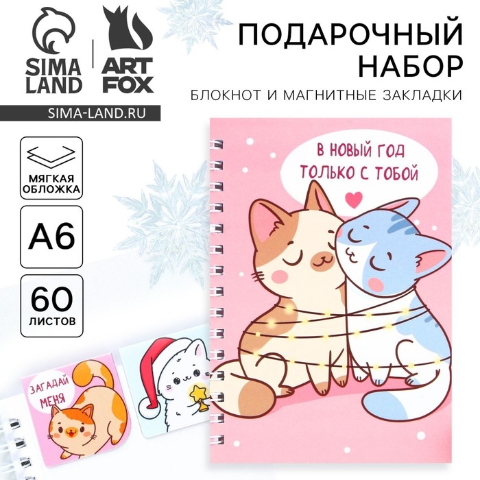 Подарочный набор новогодний, блокнот на спирали А6, 60 листов и магнитные закладки 2 шт. «В новый год только с тобой»