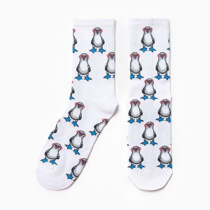 Новый год. Носки "Модный пингвин", цвет белый, размер 23-27 (38-41)