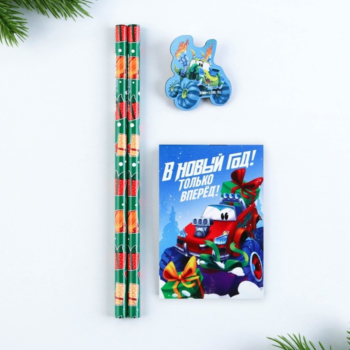 Подарочный набор новогодний, блокнот,карандаши ч/г 2 шт и значок «Лучшему мальчику»