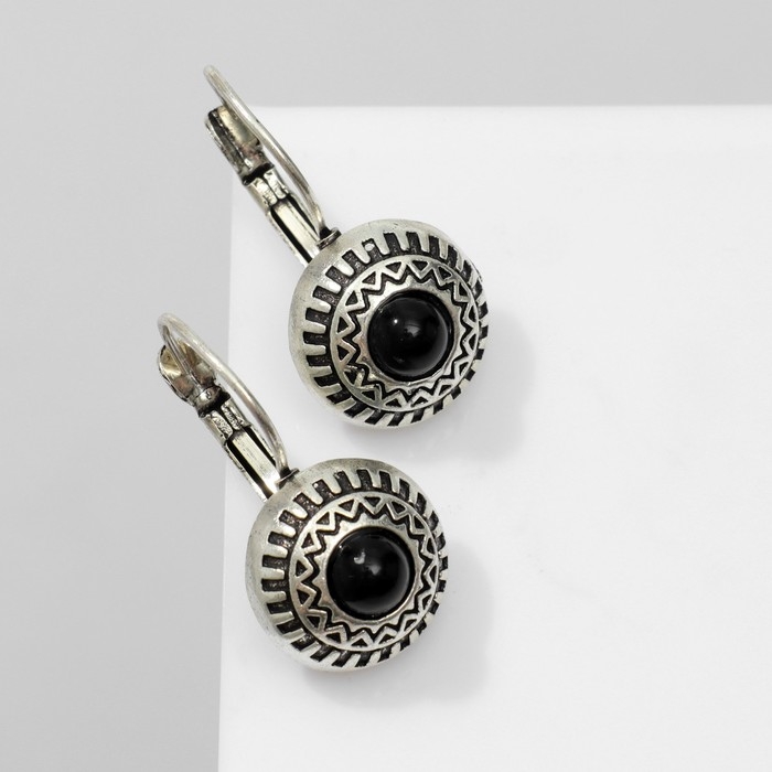 Серьги «Этника» круг в узорах, цвет чёрный в чернёном серебре