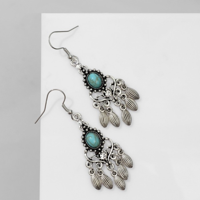 Серьги висячие «Винтаж» мрамор, цвет бело-голубой в чернёном серебре