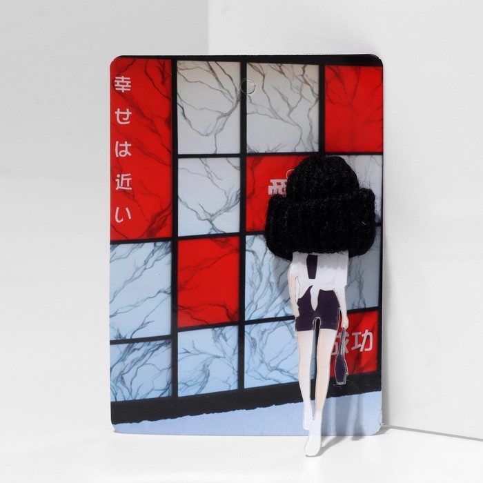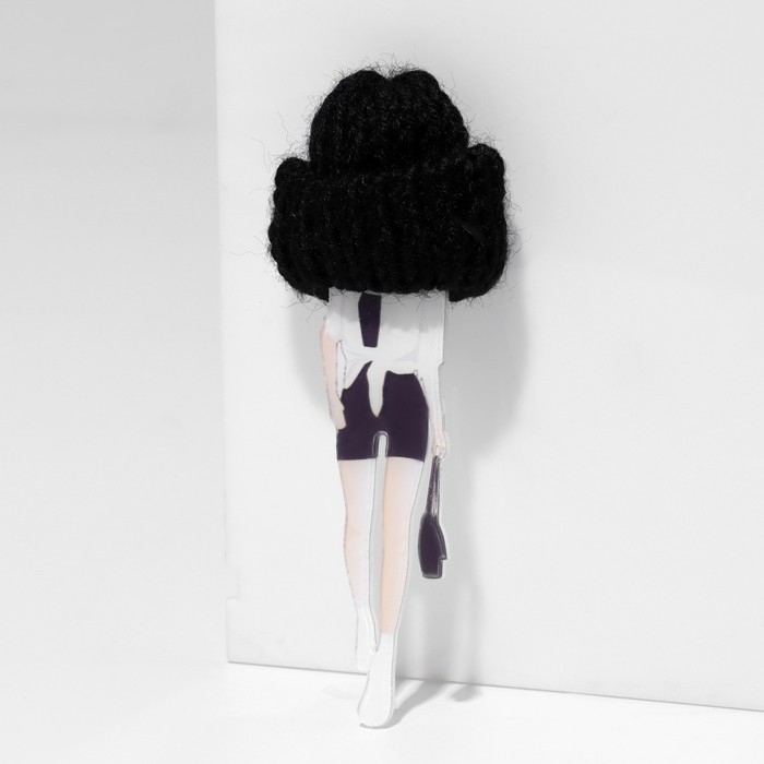 Брошь "Девочка" в косухе, цветная в серебре