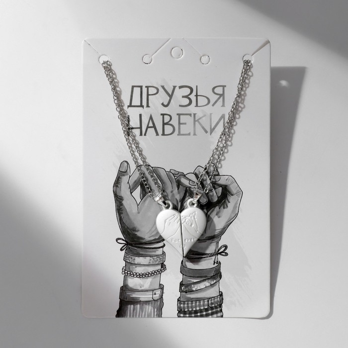 Кулоны на отрывной карточке «Неразлучники» сердце инь-янь, цвет чёрно-белый в серебре, 45 см