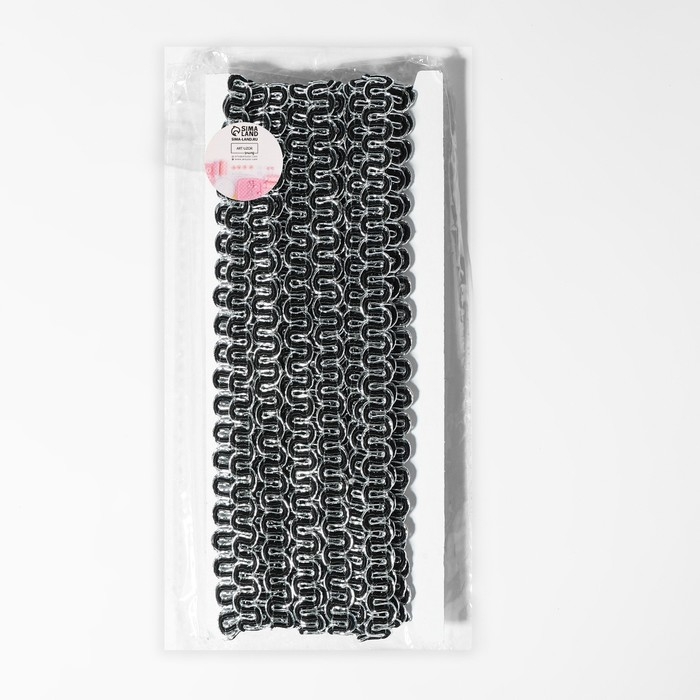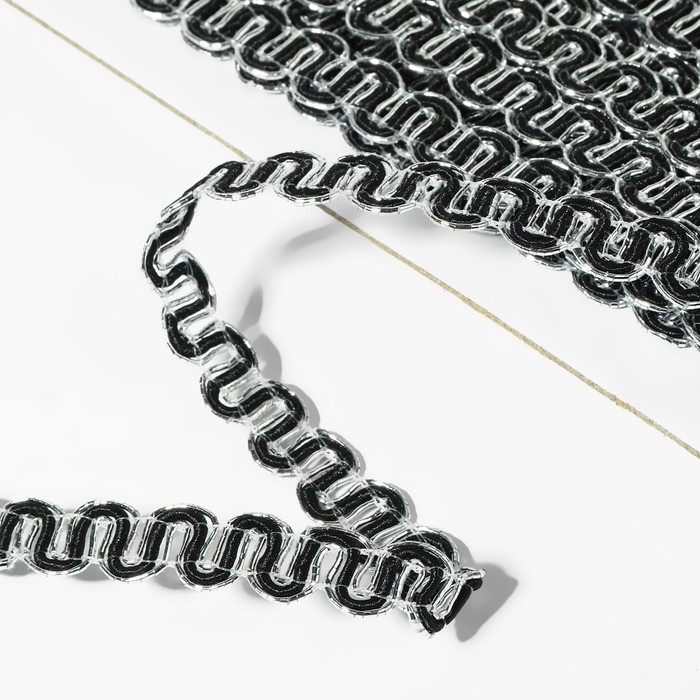 Тесьма декоративная «Волна», 10 мм, 10 ± 1 м, цвет серебряный/чёрный
