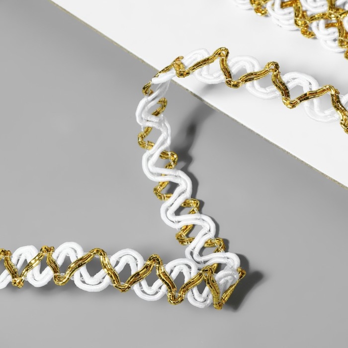 Тесьма декоративная, 10 мм, 10 ± 1 м, цвет белый/золотой