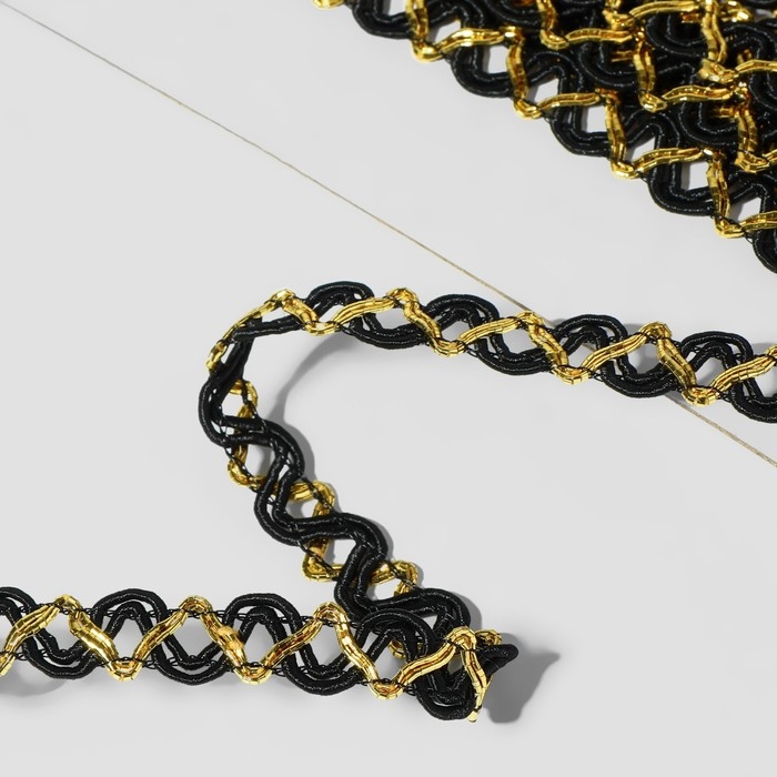 Тесьма декоративная, 10 мм, 10 ± 1 м, цвет чёрный/золотой