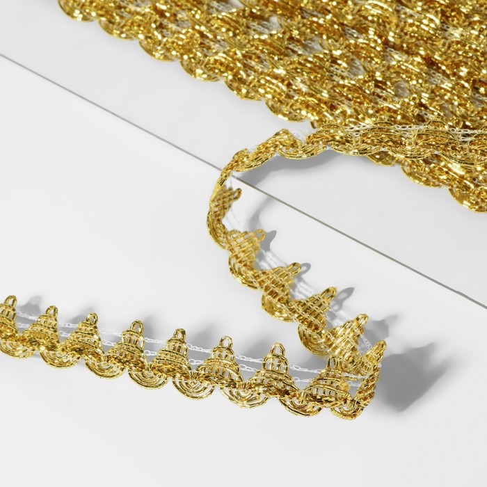Тесьма декоративная, 13 мм, 10 ± 1 м, цвет золотой