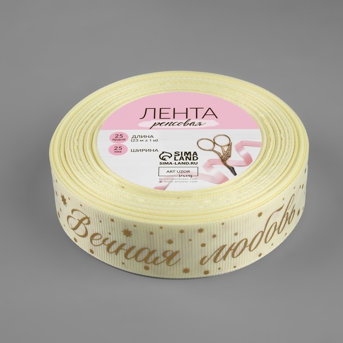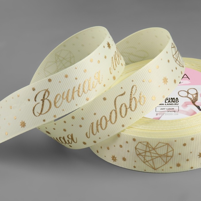 Лента репсовая с тиснением «Вечная любовь», 25 мм, 23 ± 1 м, цвет сливочный/золотой