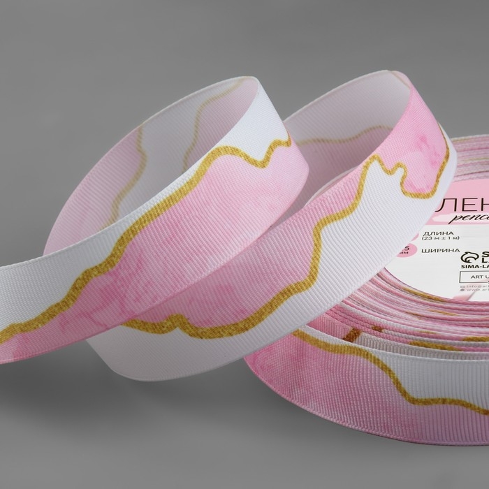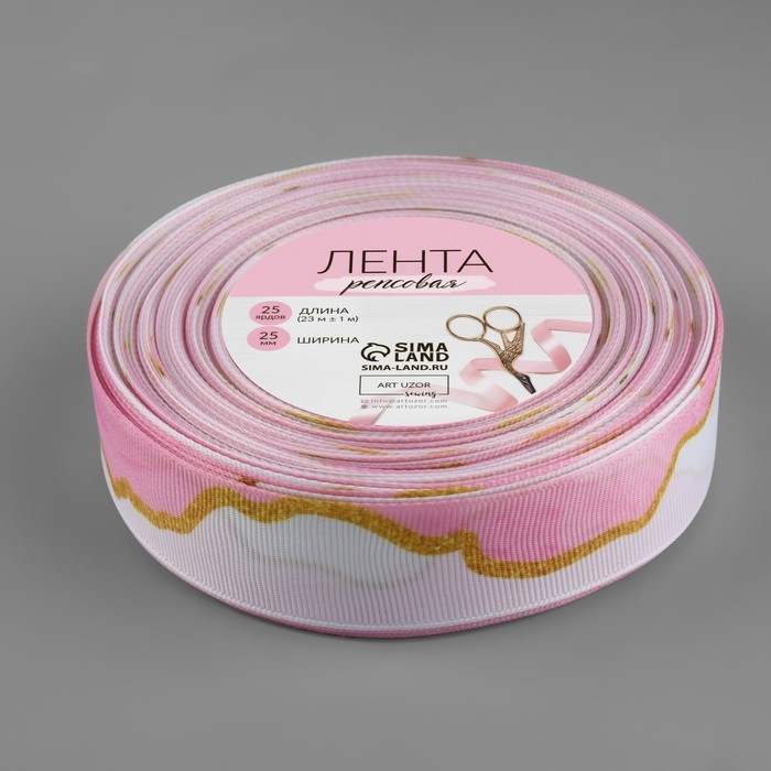 Лента репсовая «Мрамор», 25 мм, 23 ± 1 м, цвет белый/розовый