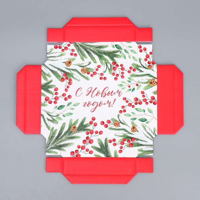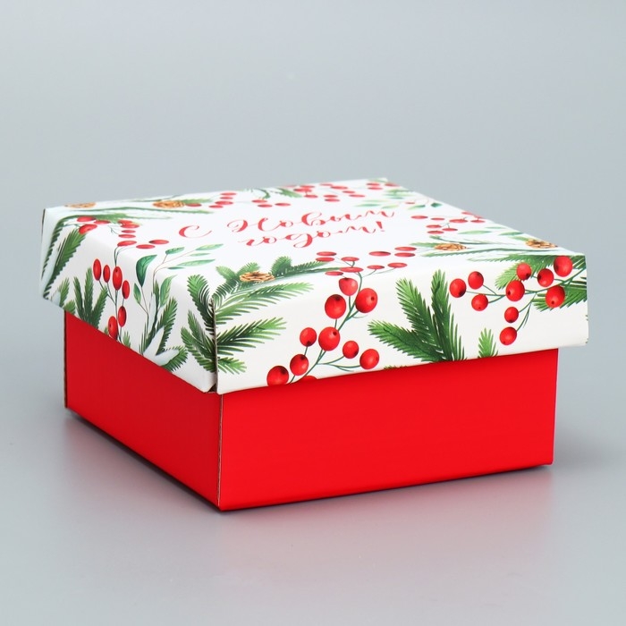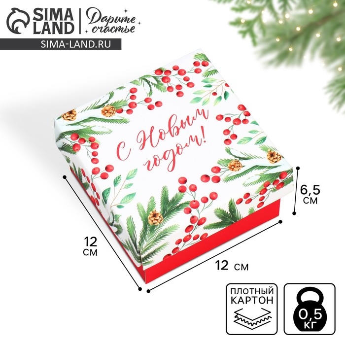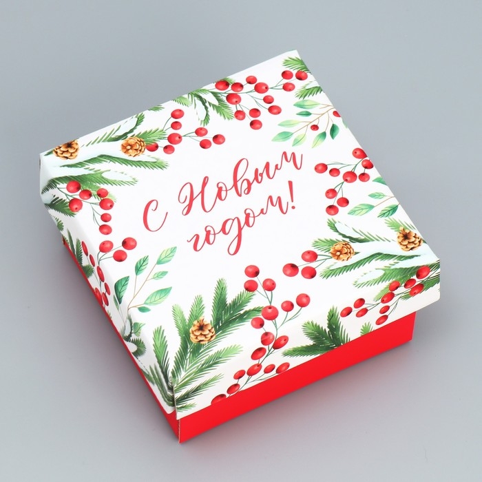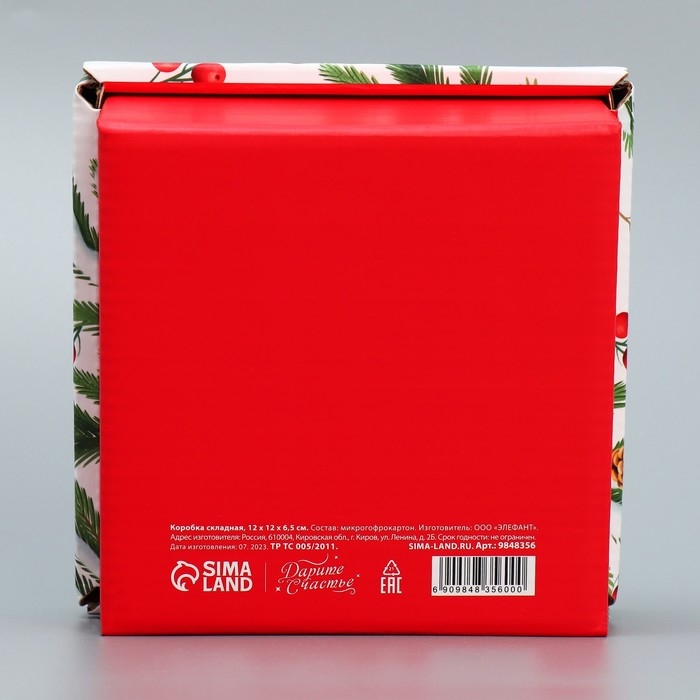 Коробка подарочная новогодняя складная «Новогодние веточки », 12 х 12 х 6.5 см, Новый год