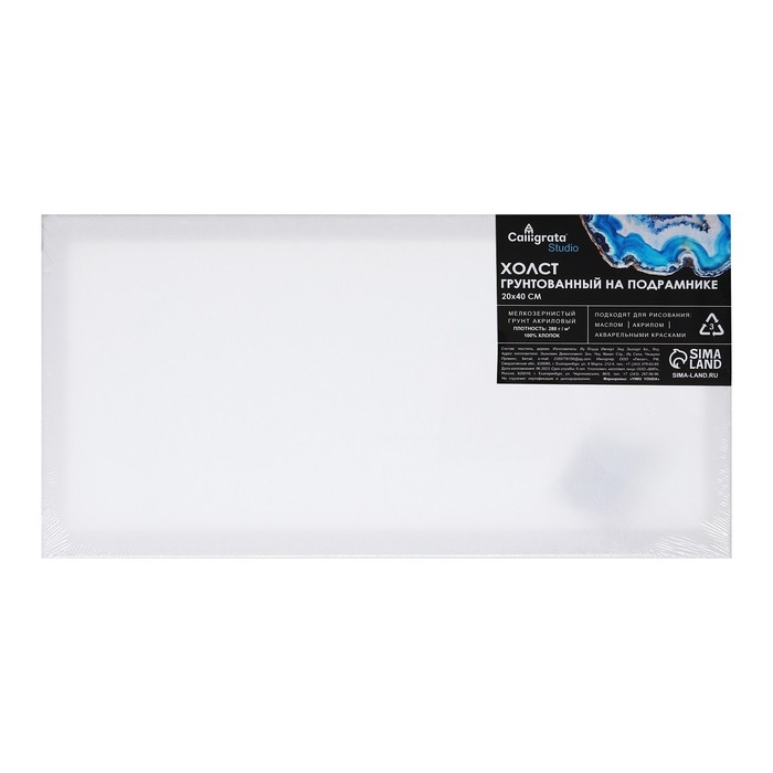 Холст на подрамнике 1,6х20х40 см, хлопок 100%, акриловый грунт, мелкозернистый, 280г/м²